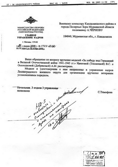 Тихо в помещении, словно и сама тишина притаилась услышать далекую правду о человеке, чья фамилия имя и отчество писались с большой буквы. На медальоне записано: " Т+. Терский район Мурманской области с. Кашкаранцы отец Дворникову Петру Ивановичу 1.Х1. 1941г". Вот и думай в этот день погиб солдат или позже?! А сколько таких не дошедших писем, донесений до сих пор еще не найдены? Медальон, как и положено, заклеен в прозрачный плексиглаз (пластмасса - оргстекло), слева оригинал, справа - распечатка, в отдельном футляре личные вещи: перочинный нож , 15- копеечная монета 1938 года выпуска и остаток гильзы, в которой и был медальон найден, две фотографии обелиска, который построили поисковики в Долине Славы в 2001 году с фамилией этого красноармейца. Принимали из рук в руки эти реликвии, и у руководителя поездки слезы наворачивались на глаза. Говорить трудно, в горле комок от волнения. Да, такое бывает не часто...