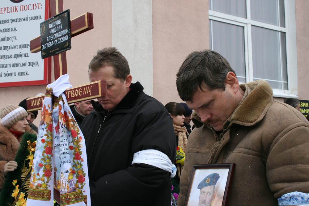 Сегодня, 4 февраля, в 11.00, возле Дома Скорби, где отпевали Николая, несмотря на плохую погоду съехались «Афганцы» не только Херсона и области, но и других городов Украины. Много тёплых слов благодарности было сказано Николаю. Зачитаны телеграммы от председателя Украинского Союза Ветеранов Афганистана, народных депутатов Украины, побратимов Украины и России. Он был не только хорошим солдатом, певцом, композитором, поэтом, но и замечательным отцом и мужем для своей семьи.