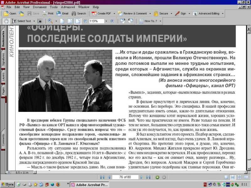 Августовский специальный выпуск журнала «Воинское братство», посвященный 25-летию Группы «Вымпел», можно скачать здесь http://www.voin-brat.ru/modules.php?name=Files&go=view_file&lid=14 Файл «vimpel2006.pdf». 16,30 МБ. Восемьдесят страниц.