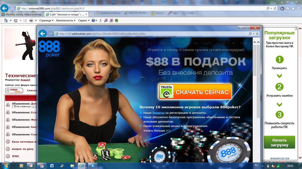 "Столкнулась с такой проблемой: подцепила что-то типа вируса на ноутбук. Теперь при любом клике мышкой выползает реклама и не дает ничего сделать. Закрывает нужные мне сайты и заставляет перегружаться веб-страницы. Даже свой любимый "АиГ" не могу посещать. Весь закрывается вот такими картинками. Если кто-то столкнулся с подобными вещами и смог от них избавиться, помогите, пожалуйста.