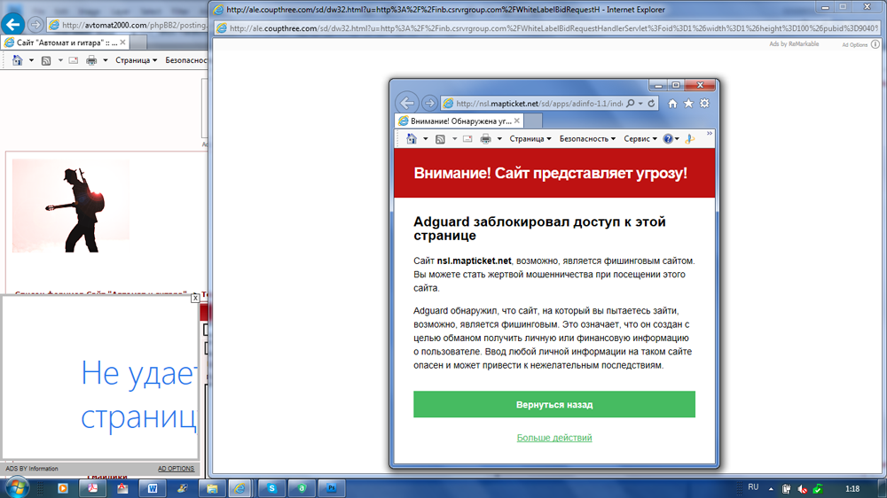 "Столкнулась с такой проблемой: подцепила что-то типа вируса на ноутбук. Теперь при любом клике мышкой выползает реклама и не дает ничего сделать. Закрывает нужные мне сайты и заставляет перегружаться веб-страницы. Даже свой любимый "АиГ" не могу посещать. Весь закрывается вот такими картинками. Если кто-то столкнулся с подобными вещами и смог от них избавиться, помогите, пожалуйста.