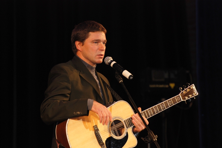 «Сармат», «Слепой», «Платина», «Громовы» - вот далеко не весь перечень фильмов, что познакомили, а затем и влюбили нас в потрясающе талантливого актера, режиссера, автора и исполнителя своих песен – Сергея Маховикова. Уже первое общение с Сергеем подтвердило и благородство, и сердечность, и нескончаемую доброту этого человека. Мне не пришлось усердствовать в объяснениях, что это за программа. Узнав, что в зале будут семьи погибших, не раздумывая, ответил: «Непременно буду!» И вот уже зал благодарит его за песни, за то, что в этот день он с ними, наши матушки с любовью говорят ему: «Спасибо, сынок!» Что может быть дороже! Для него это выше всяких похвал. В новом, 2010 году, выйдет новая авторская работа Сергея – фильм «Тихая застава». Даже рабочие материалы обещают правдивое, захватывающее, большое кино!